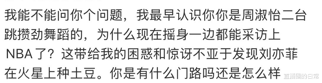 不少网友吐槽:一个跳“擦边”舞蹈的女主播竟然变成能采访NBA球星的了?蛋宝这是又有榜一大哥给资源了?