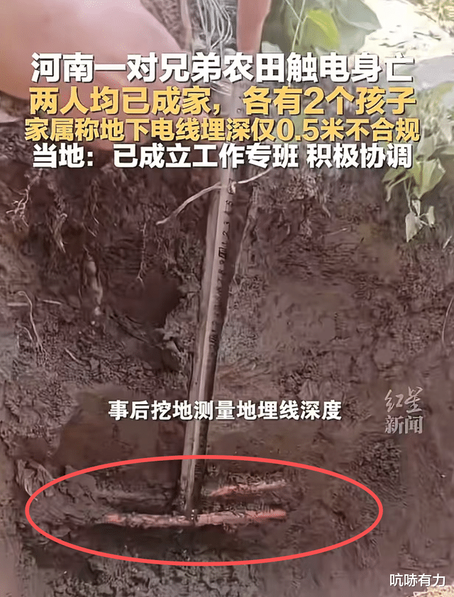 这根地埋线,埋深只有50厘米,按国家规定,农田里埋线得深过1米。