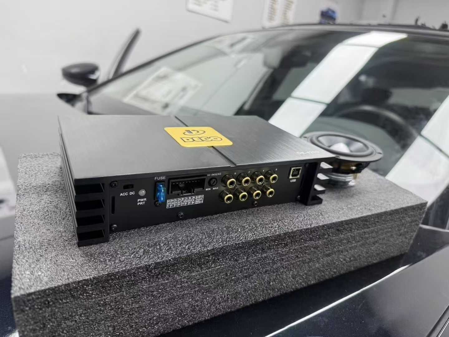 埃曼德高DE-4280六通道处理器功放作为系统的控制中枢,通过六路独立通道的协同工作,实现了对A6L宽大座舱的声学优化。后排乘客能感受到声场从驾驶位向后方的自然延伸,而不会产生声音集中在前方的压迫感。这套设备对原车主机信号的精细处理,使得蓝牙连接的流媒体音乐也呈现出更丰富的层次,网络电台常见的压缩失真被转化为柔和的背景噪点。
