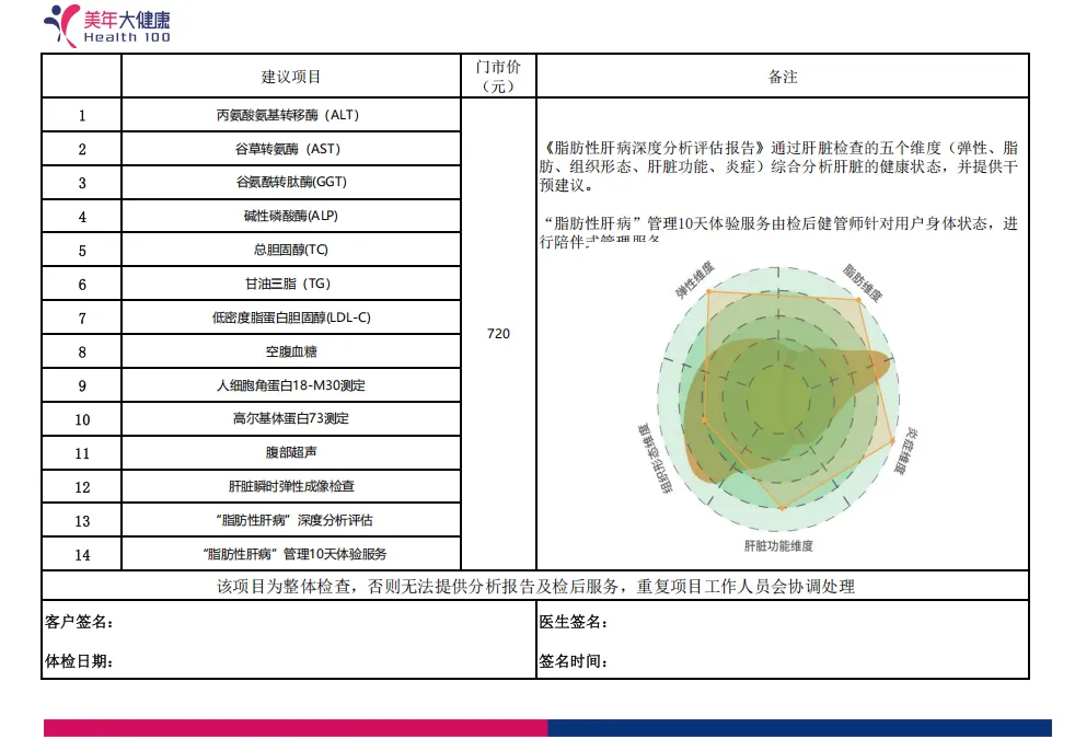 一、推出深度检查量化评估表:具体有《“脂肪性肝病”深度检查评估表》、《“妇科疾病”深度检查评估表》、《“心血管疾病”深度检查评估表》、《“消化道疾病”深度检查评估表》、《“肺结节”深度检查评估表》,根据风险评估表有针对性的进行完整、深度的相关检查,让每位体检的客户不会因为项目固定而错失关键检查,最大程度的提升体检的专业意义。