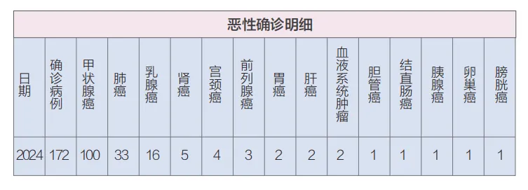 二、恶性肿瘤(癌症):揪出“健康潜伏者”甲状腺结节:检出101,035例(44.63%)重要异常9,553例(占结节9.46%,男3,600例/女5,953例)