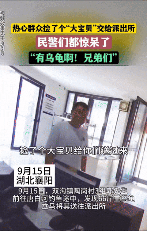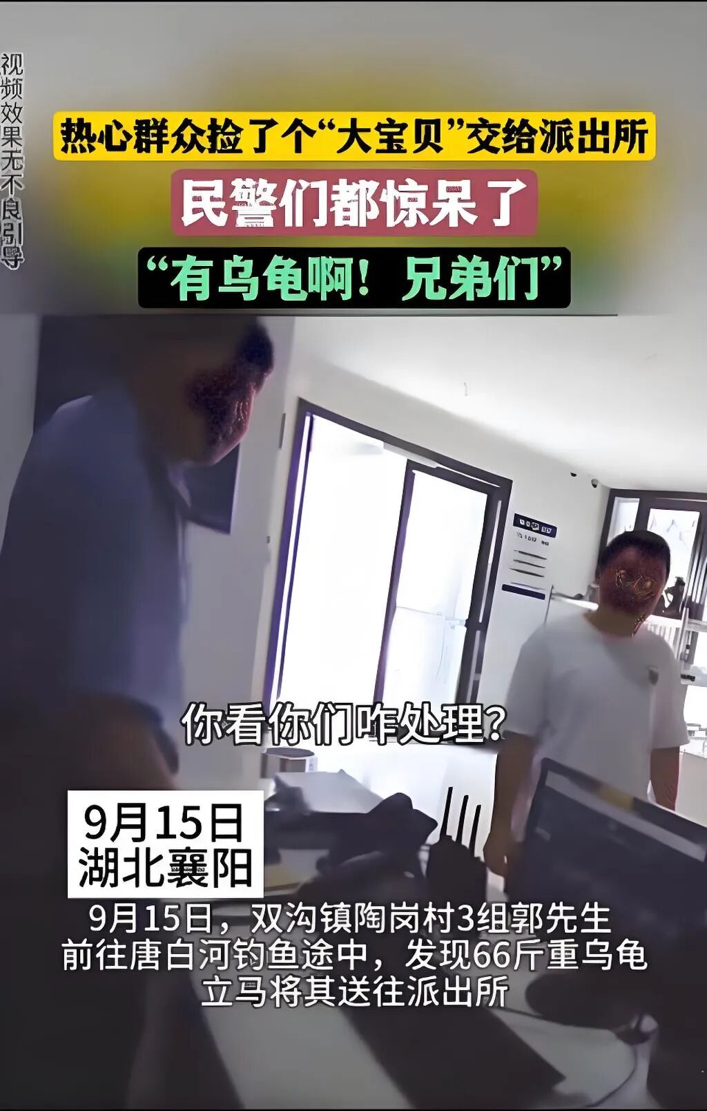 后来称重才知道,这只乌龟足足 66 斤,背甲直径快半米,外壳又硬又厚,活像个 “龟界巨人”。看着这罕见的大家伙,郭先生没想着占为己有:“这么大的乌龟,肯定活了好多年,说不定还是保护品种,放野外不放心,交给警察才靠谱。”