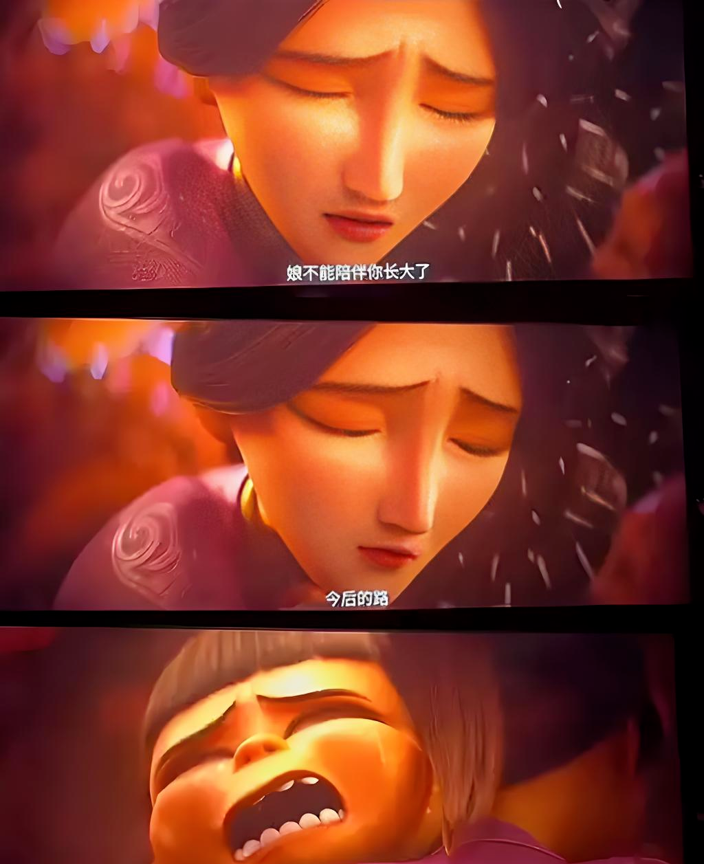 “殷夫人明知会被刺穿,仍在临死前拥抱被穿心咒困住的哪吒,我哭得比失恋还惨”。