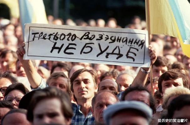 #3 1991年,一场乌克兰独立集会上,一名男子高举写着口号的牌子。