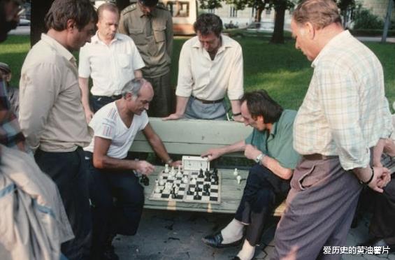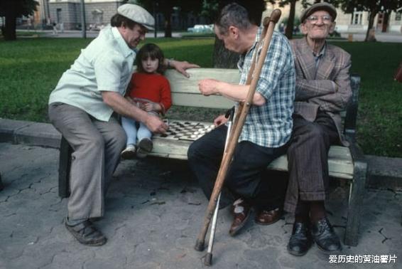 #12 1991年,乌克兰利沃夫,几位市民在公园长椅上对弈,气氛安静而专注。