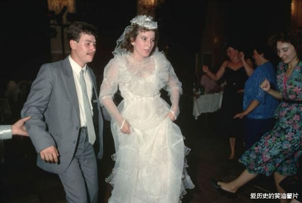 #7 1991年,乌克兰利沃夫,一对新人在婚礼招待会上合影。