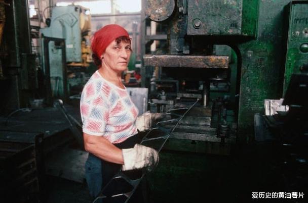 #4 1991年,乌克兰利沃夫的巴士制造厂里,一名工人正在操作压力机。