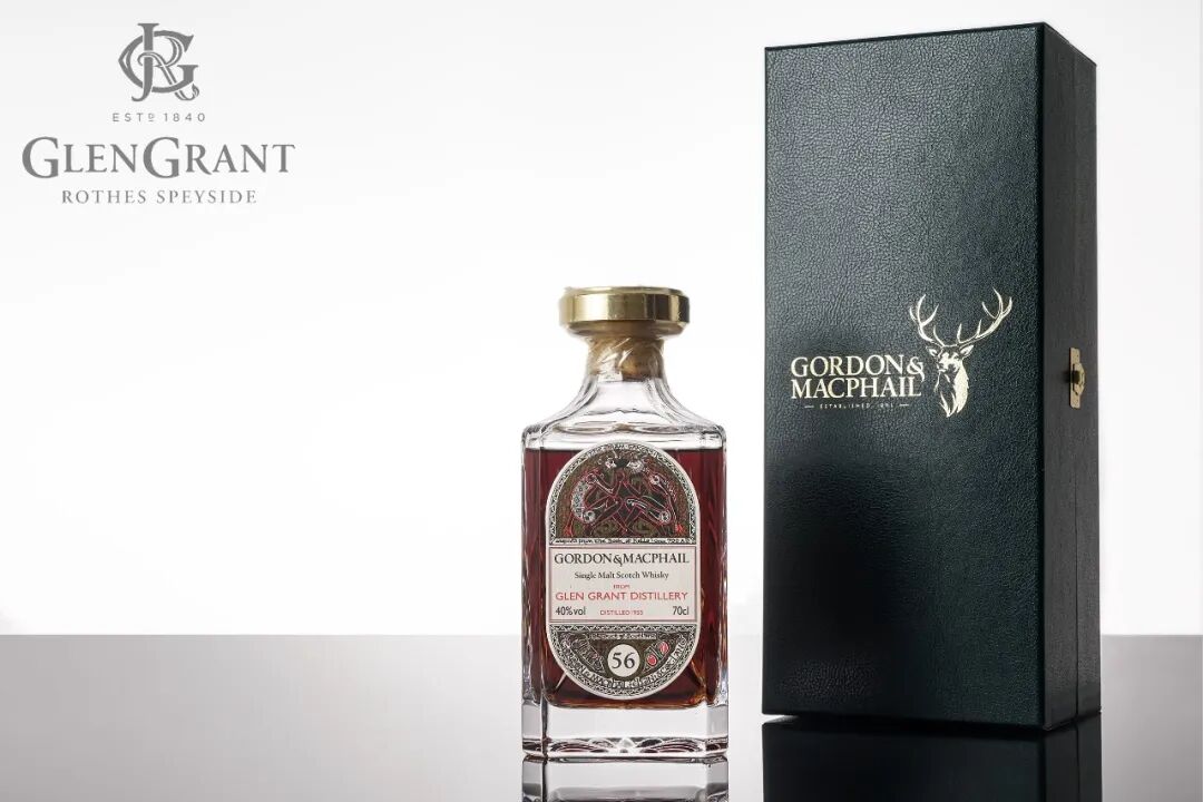 这瓶具有56年酒龄的格兰冠老酒,实属罕见。该酒蒸馏于久远的1955年,在酒厂严选的橡木桶中陈年,之后在Gordon & Macphail的仓库里熟成收尾,限量装瓶推出。酒精度为40%Vol.,酒色深邃迷人。搭配上精美的水晶瓶,以及凯尔经Book of Kells古典细致的插画酒标,包装设计典雅华贵,可谓是岁月与匠心的典范。