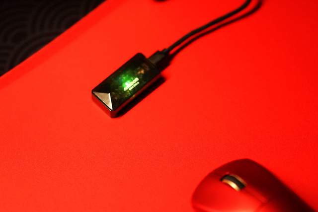 使用出厂自带的接收器,直接享用满血星闪原生级双8K回报率的无线连接,测试之后无线连接几乎可以做到与有线模式一致,超低延迟做到了微秒级响应。