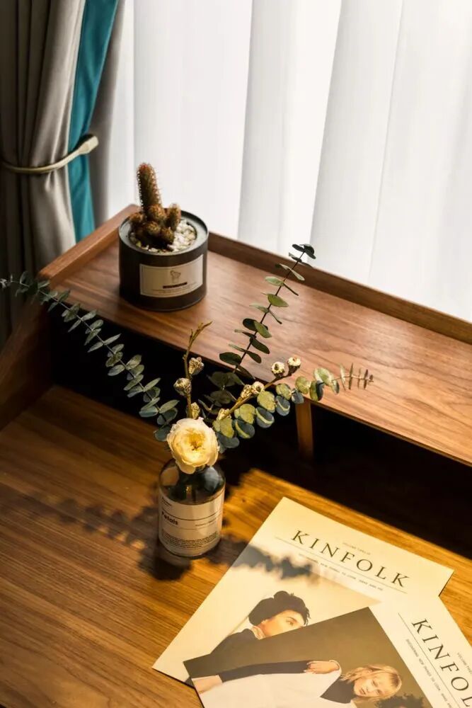 ▲衣柜的右侧窗户边,刚刚好够位置布置一张小书桌,让主人在家也有一个轻松舒适的阅读位置。