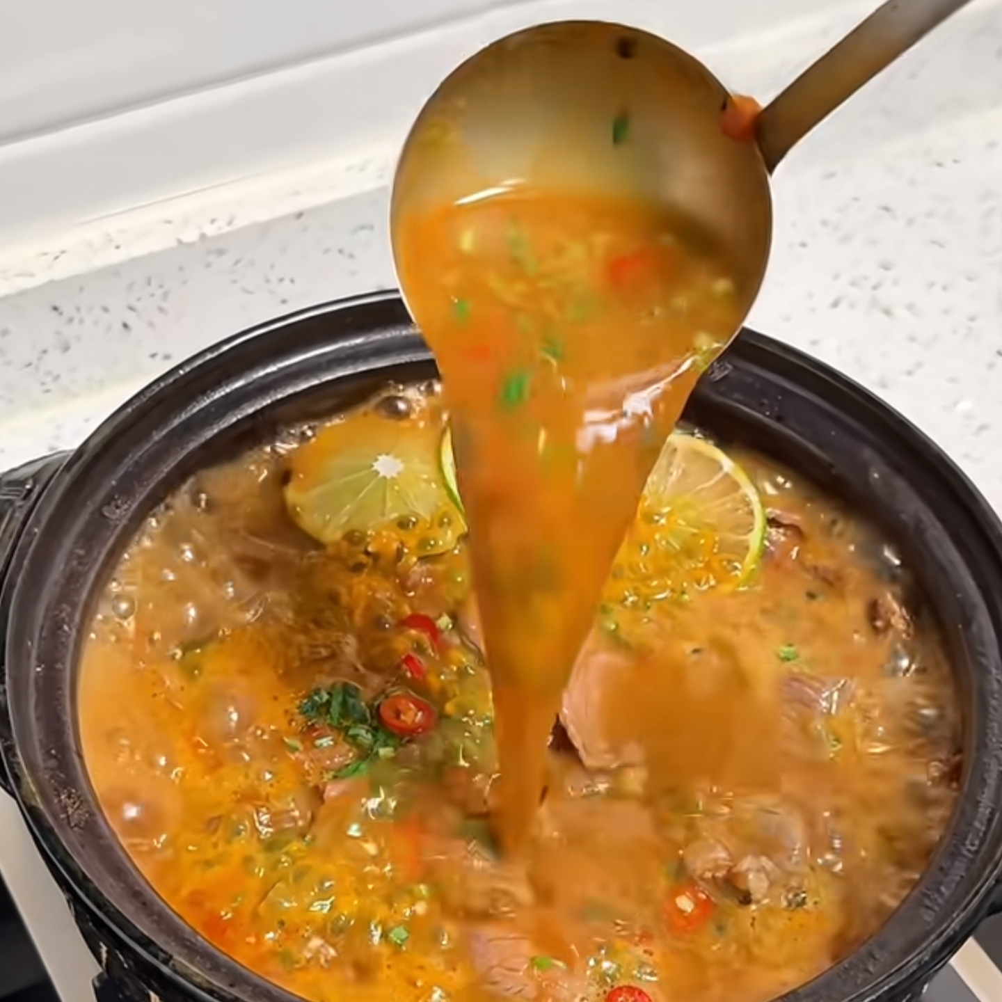 最喜欢用青花瓷大碗盛这道菜,把牛肉和酸汤都倒进去,再放几片新鲜的薄荷叶点缀。酸香混着薄荷的清凉,光是看着就让人食欲大增!