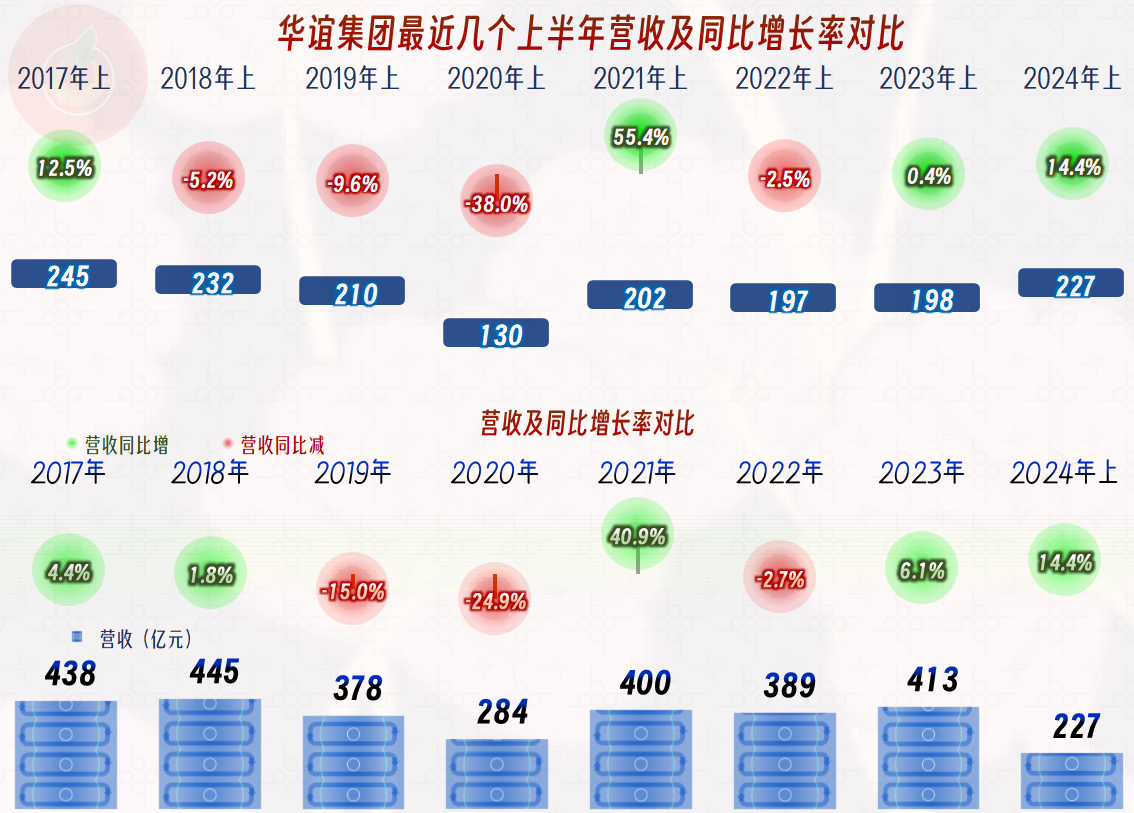2024年上半年,华谊集团的营收同比增长了14.4%,主要原因我们上面已经看过了,就是其精细化工大类中的“丙烯及下游产品”的增长起到了关键作用。2024年上半年的营收规模已经超过了2021年这个大家默认的化工行业峰值年份的上半年,但比更早的部分年份还有差距。