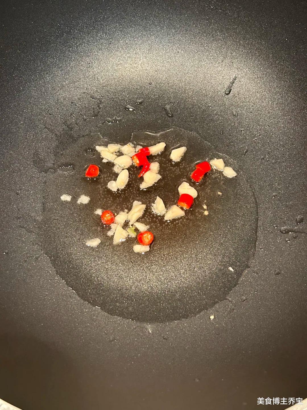 3、起锅烧油,锅里倒上适量的食用油,把姜丝和干辣椒段丢进锅里,把火稍微调小一点,慢慢煸炒,把姜丝和辣椒的香味彻底激发出来。