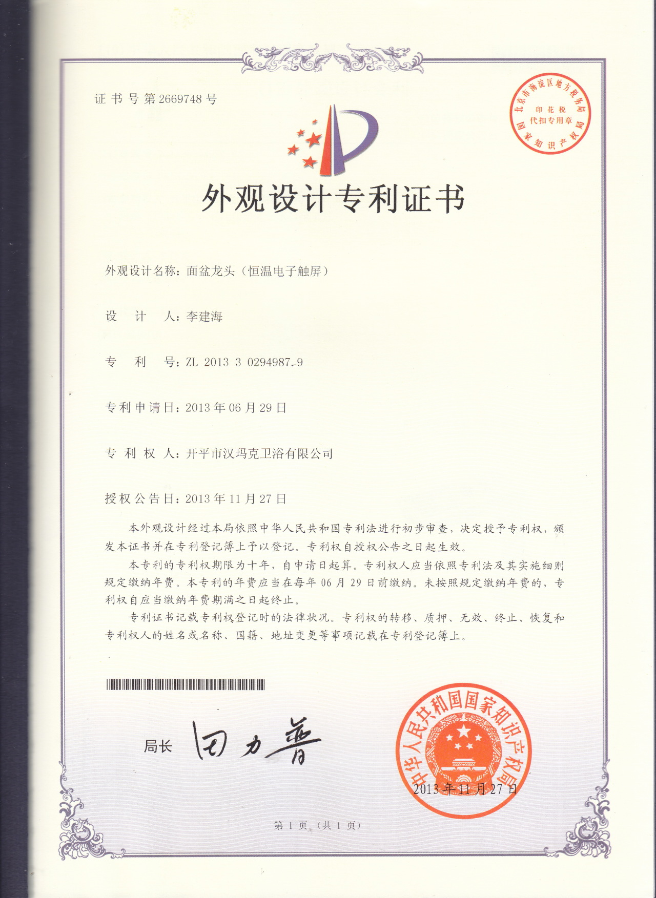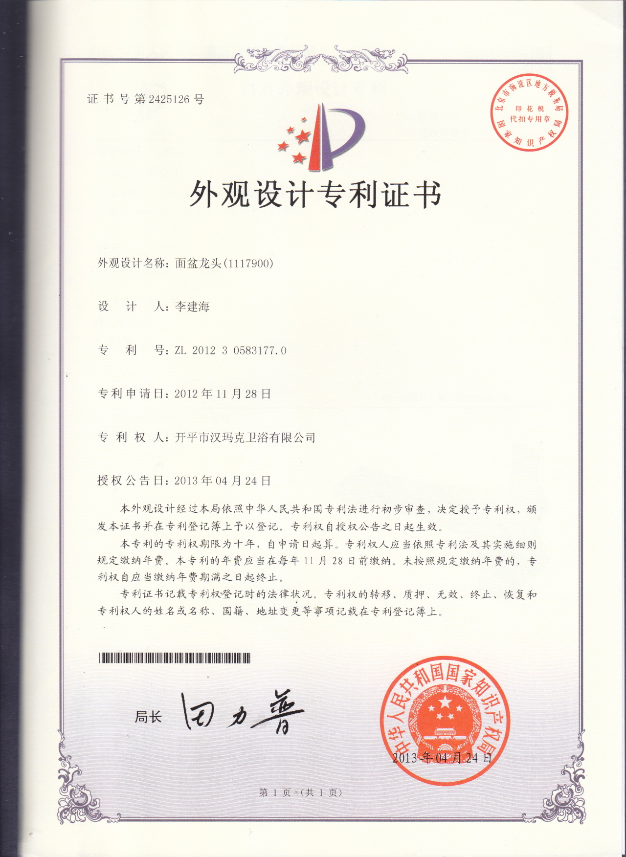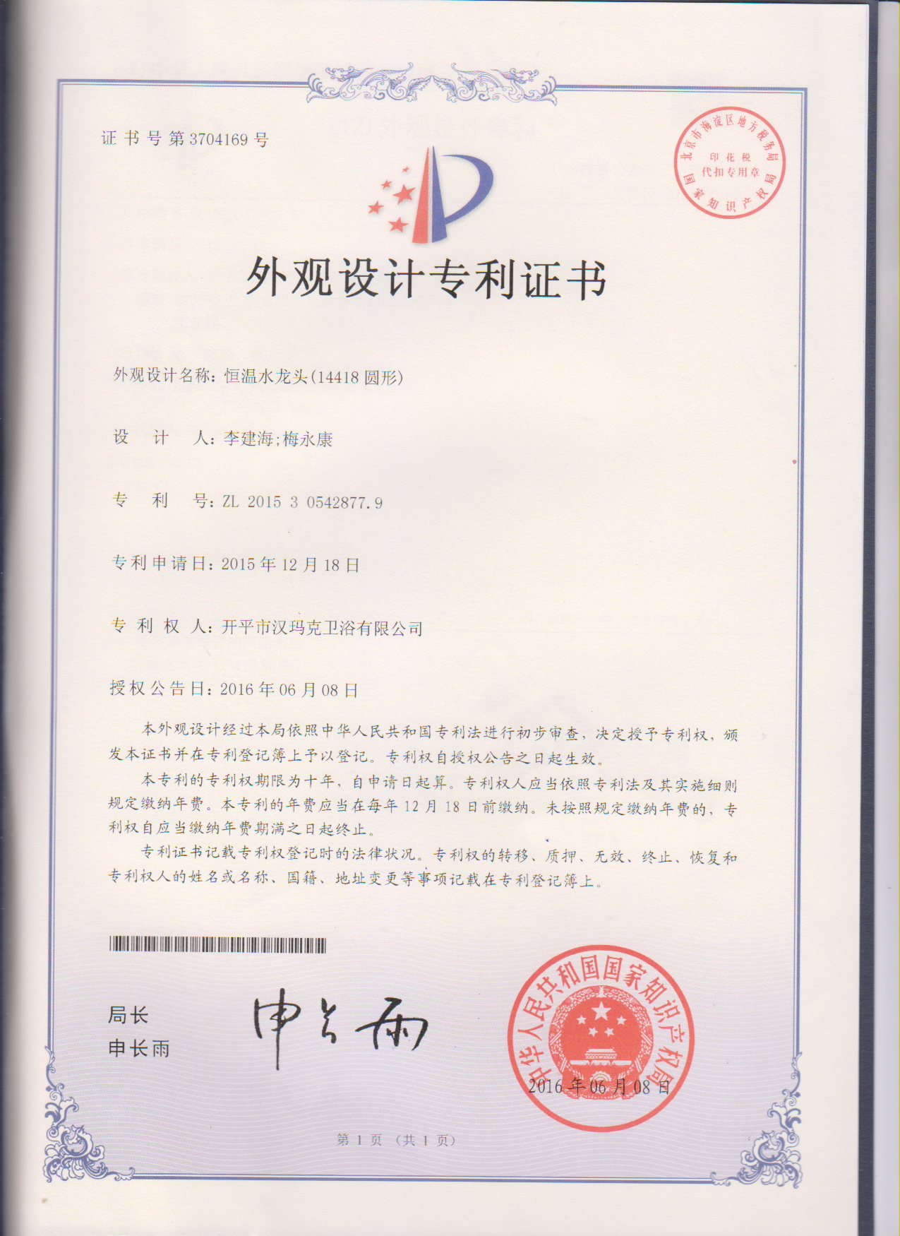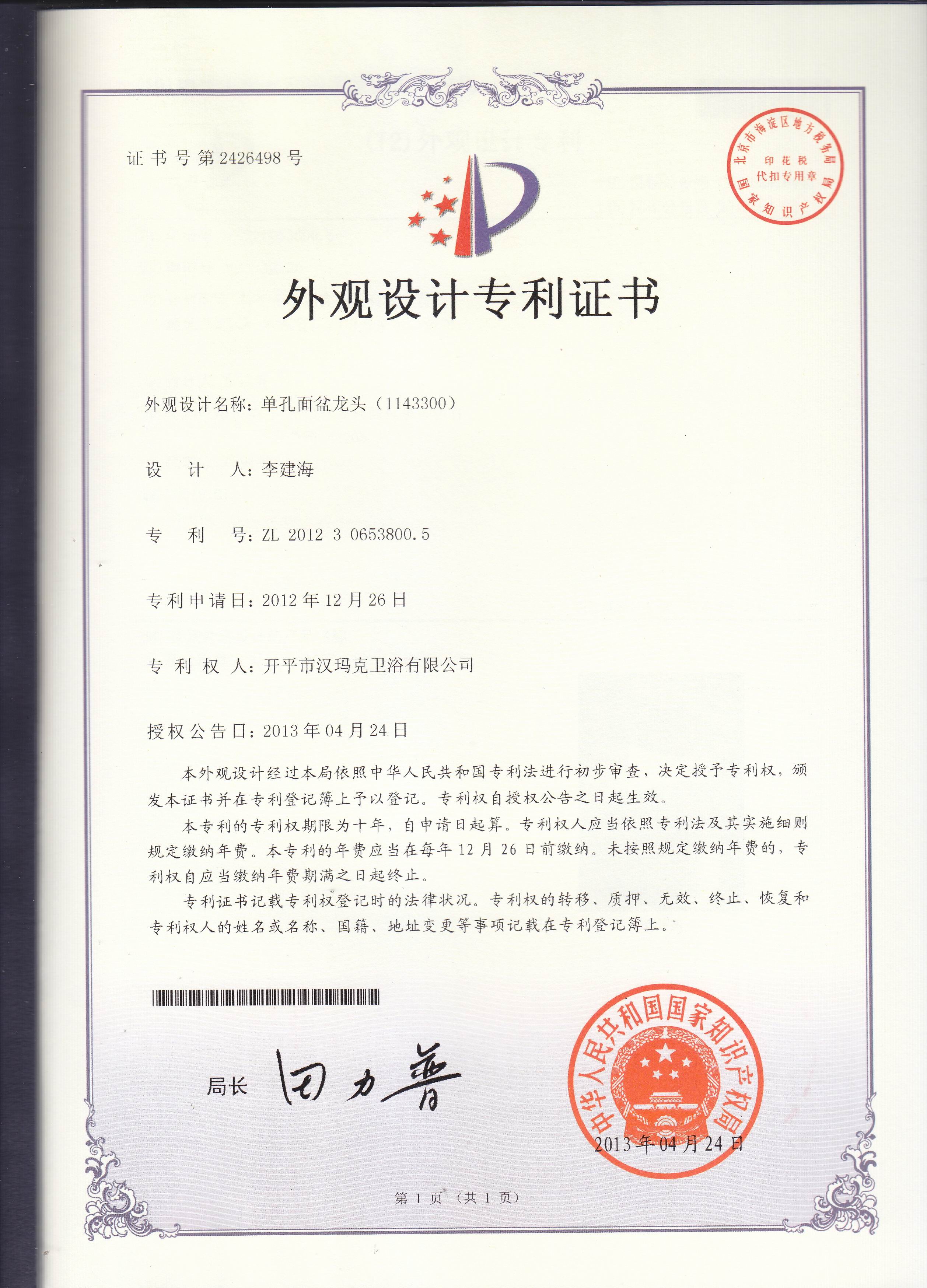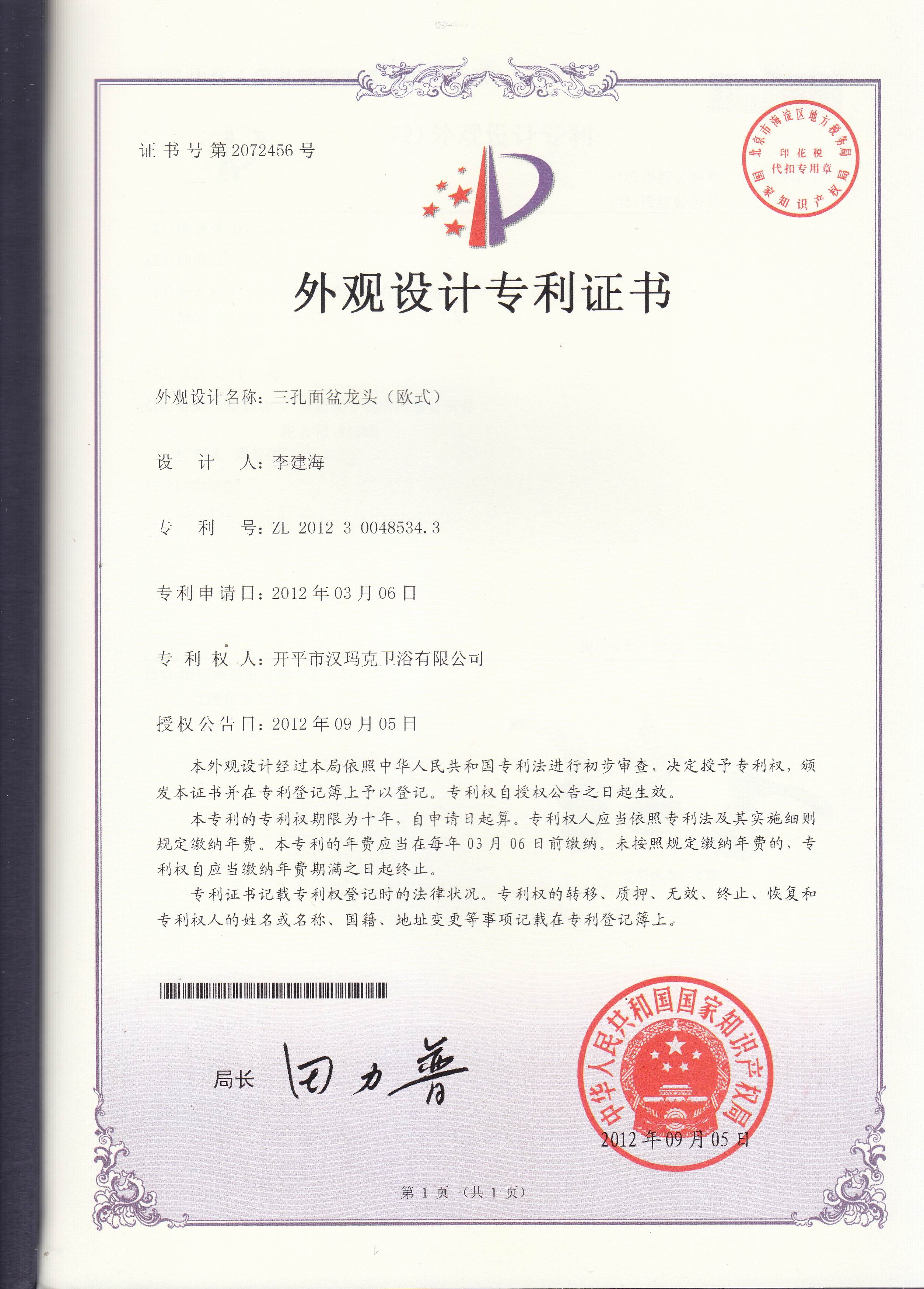 部分专利证书展示
