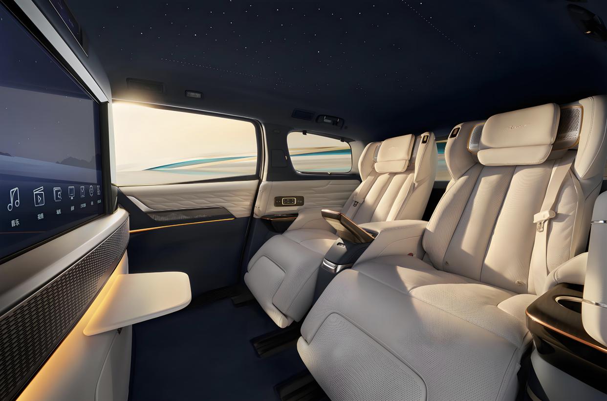 别克世纪冠军版车内运用了豪华普惠哲学设计理念,触手可及的Fine Nappa半苯胺真皮,选用北美公牛腹部最柔韧的皮层,毛孔透气性媲美高端定制西装面料。环抱式的中控台应该会加入大量平直的线条勾勒,增加车内的横向视觉效果。大面积真皮材质的铺陈,大量亮黑色钢琴烤漆装饰面板和银色镀铬元素的点缀,中控台和门板四周都加入了别克Avenir车型特有的的飞翼式纹理,再配上多色氛围灯设计,前排还配备了双12.3英寸的双联液晶显示大屏;后舱采用了独立的空间布局,配备了32英寸智能升降屏,车顶配备了星空车顶(528颗星星图案的麂皮顶棚),车身侧面还有延伸2.5米的巨幕银翼光毯,让客户从踏近车辆就感受到尊贵仪式感。还有21扬声器的BOSE高级音响,极尽奢华。