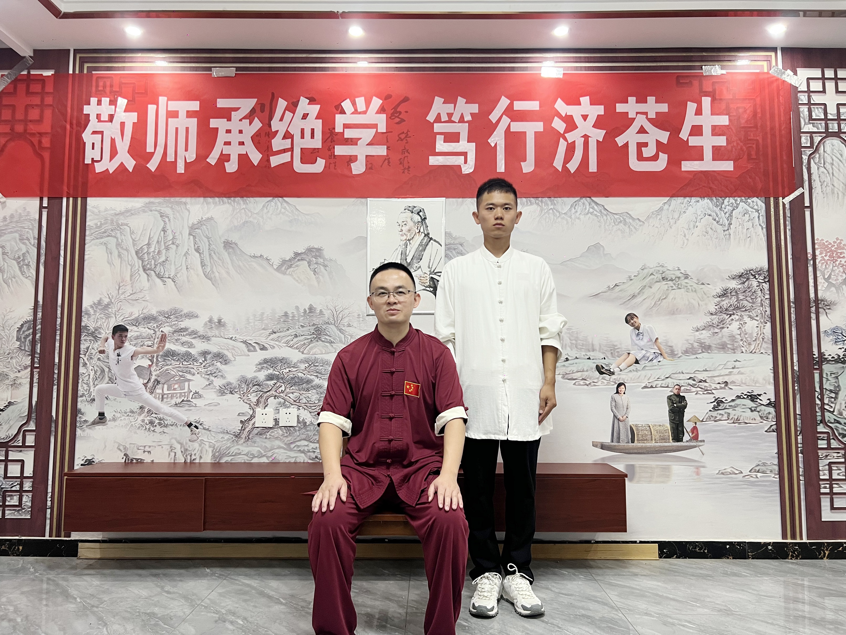 董世龙作为粟龙教授的弟子,自幼痴迷武术,从扎马步、练太极到钻研民族传统体育养生,在个人精进与师长指引下,一步步成长为该专业的硕士研究生。多年习武让我深谙“武道重仁心”之道,更在实践中体悟到拳脚间的“气脉流转”与中医“气血运行”有着相通之处。后有幸跟随岭南名医粟龙教授学习针灸,潜心钻研苗医火针。曾记得有一次在高铁上,我凭指针点穴救助了一位突发胸痛的乘客,那一刻,我真切体会到“以医解病痛”的意义。我将武道的坚韧与仁心融入医道,以拜师粟龙教授为新起点,立志传承恩师绝学,要用带着温度的医术,笃行济苍生之愿,在“敬师承、济世人”的路上稳步前行。