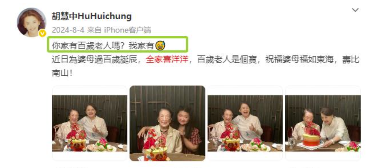 姐妹们,娱乐圈最近最让我热泪盈眶的,不是某小生的告白现场,也不是某顶流的翻车声明—— 是胡慧中,给她101岁的婆婆办寿宴。 没滤镜、没赞助、没营销,就三代同堂,坐一桌饭。 那一刻,我突然觉得——原来女神老了,也能帅成这样。