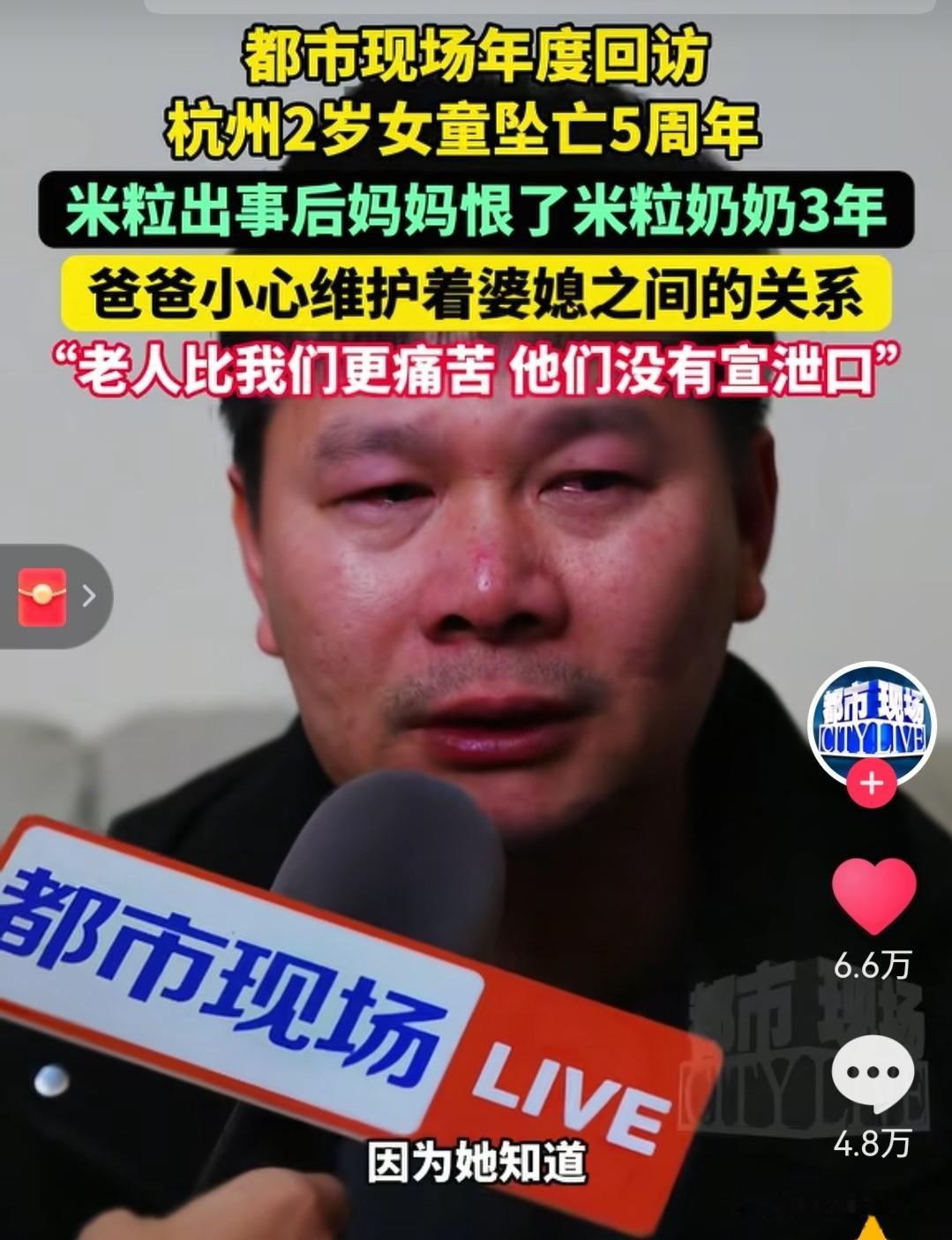 近日,杭州2岁女童坠亡5周年,都市现场记者对女童家属进行了一次年度回访。没想到米粒爸爸一句话再次引发巨大争议,米粒奶奶的哭诉自责直接把米粒妈妈再一次推向风口浪尖!