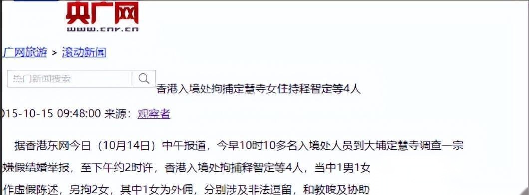 香港女子释智定,原名史爱雯,出生于1967年,东北人,曾在深圳工厂打工,后嫁给香港人获得身份。