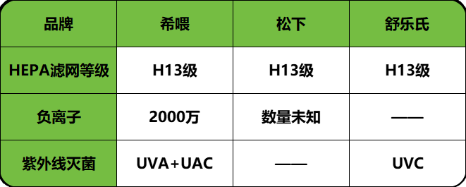 松下是 H13 滤芯配负离子,没有 UVC紫外线灯珠,深度有限,但日常可用。