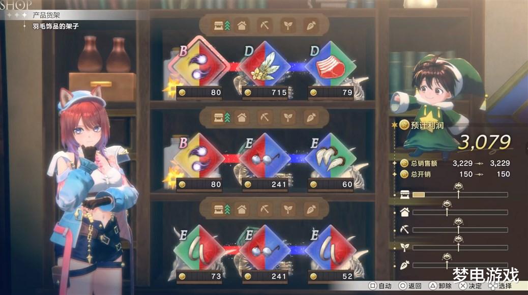 除开这些大头外,《红白》剩下的只有一些非常轻量的小玩法了,如任务委托、经营店铺、投资城镇,与历代炼金工房的作品如出一辙,共同渲染了一个“通过炼金术改变自我,改变生活所在地”的小合家欢故事,新瓶装旧酒乏善可陈。