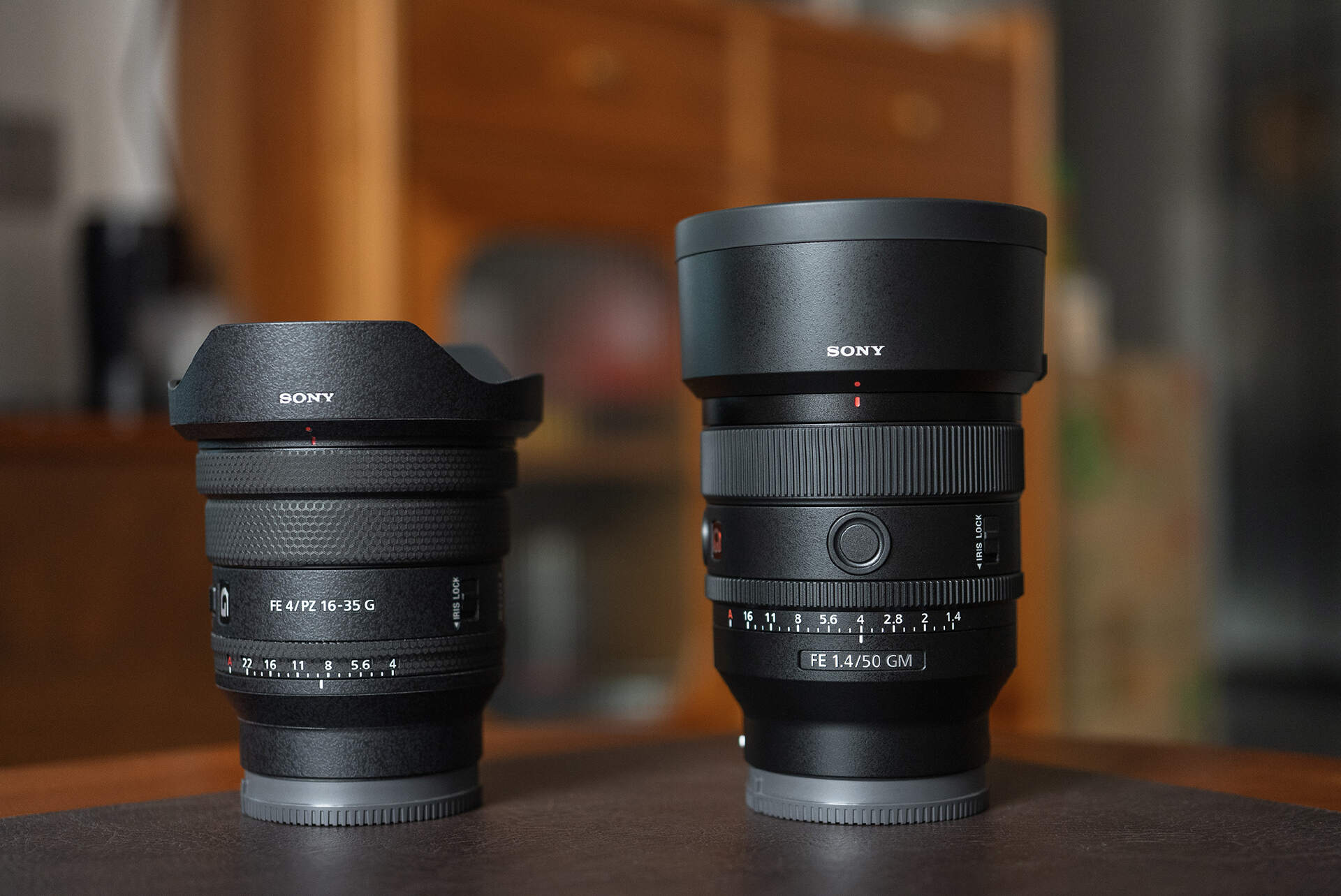 同场取出索尼 FE PZ 16-35mm F4 G 做体积参照物,那就很清晰地可以感受到,索尼 FE 50mm F1.4 GM 的遮光罩,便是 ta 给人“有份量”感觉的来源。