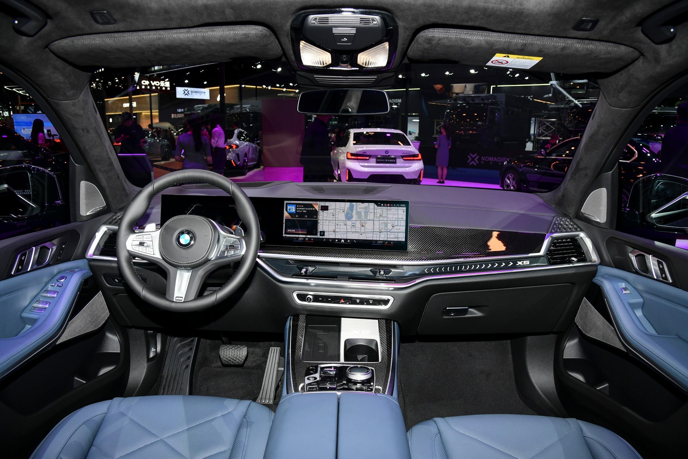 内饰部分,2025款宝马X5曜夜套装提供全新海蓝内饰颜色,标配有20英寸轮辋、前后驻车雷达、自适应巡航、驾驶模式选择、可开启全景天窗、前排座椅加热、手机无线充电等配置。