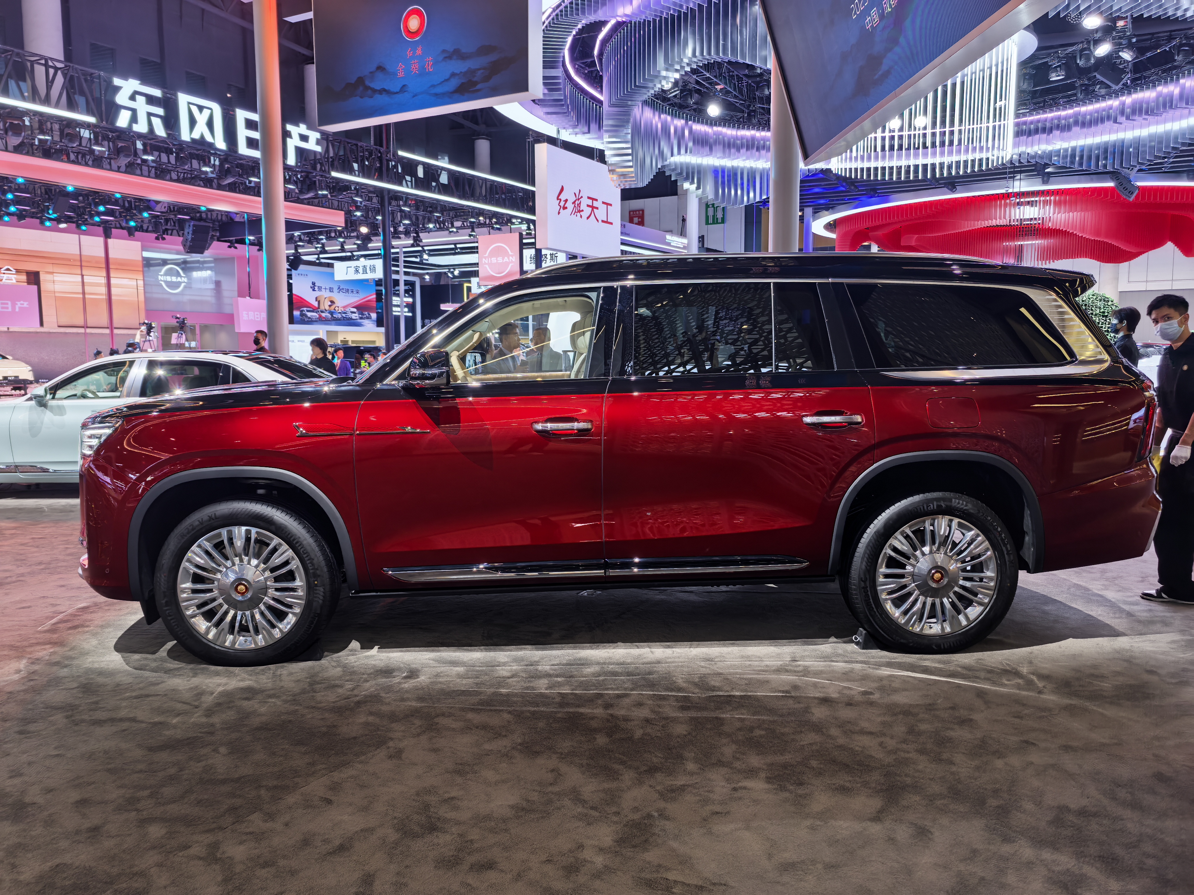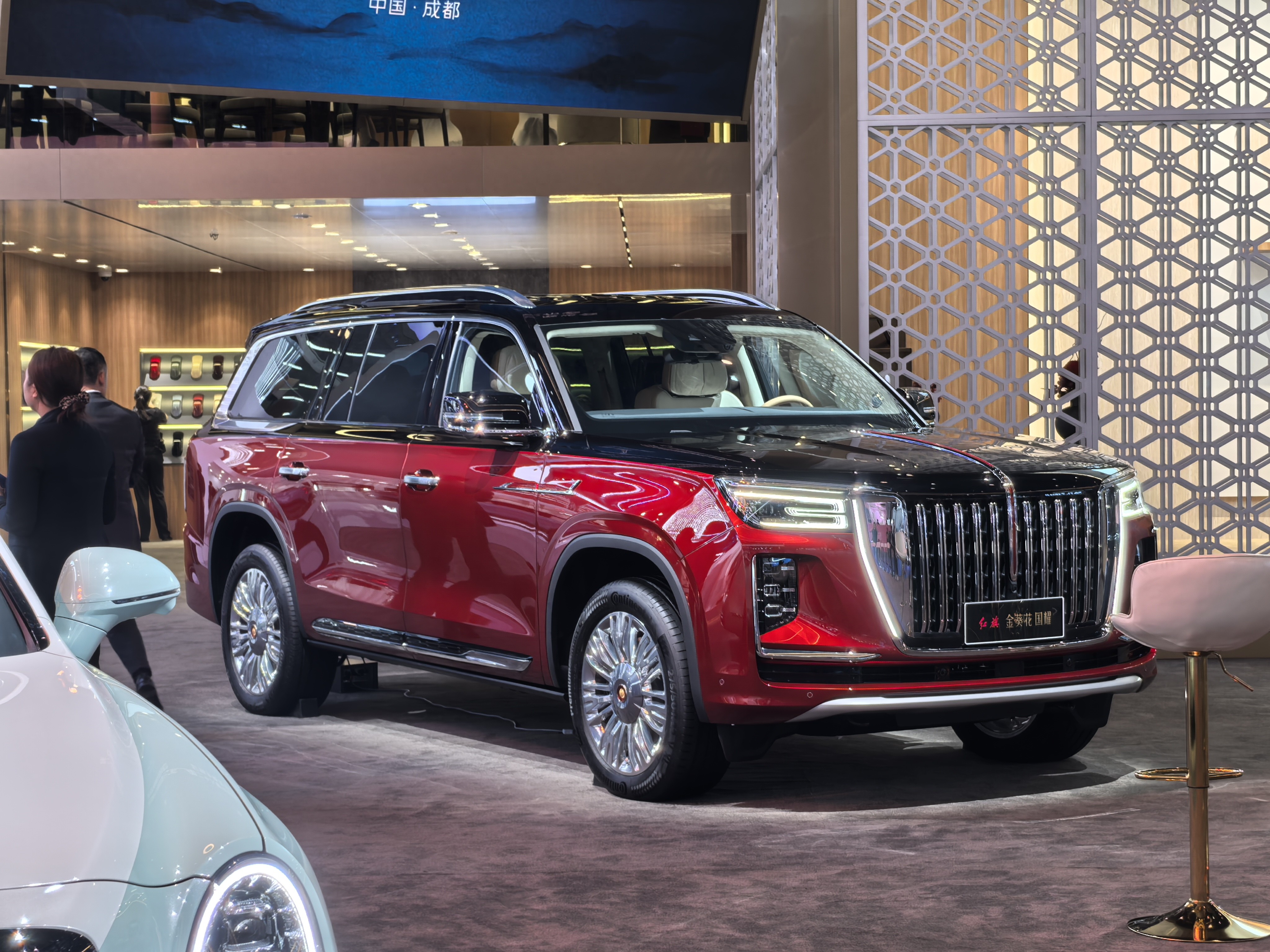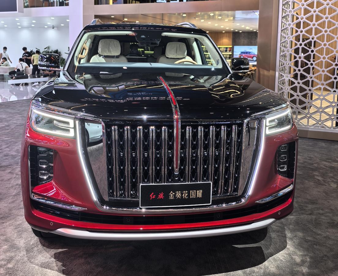2026款红旗国耀外观设计与2022款基本一致,提供标志性的大尺寸竖条幅前格栅、前部红色旗标、22英寸密条辐镀铬轮辋等,可选装双色车身和车身腰线等。
