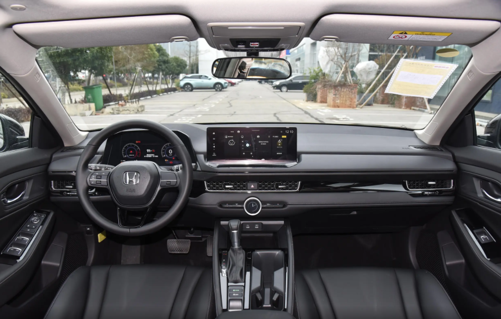 打开车门来到车内,东风本田英仕派的内饰设计同样很有“本田”的味道,像空调出风口方面,其便采用了银色的网状设计,配合横直的线条勾勒,视觉效果上倒是有一种较强的层次感,并且在显示屏幕方面,东风本田英仕派的中控屏幕达到了12.3英寸,而数字仪表的尺寸则达到了10.2英寸,虽然尺寸不算行业的主流,但是对我们的日常使用也不会有太大的影响。就拿中控屏幕来说,其无论是分辨率还是操作流畅程度,均是不差的,就是在AI语音识别系统方面,该车的识别精准率不太够,还有待提升。