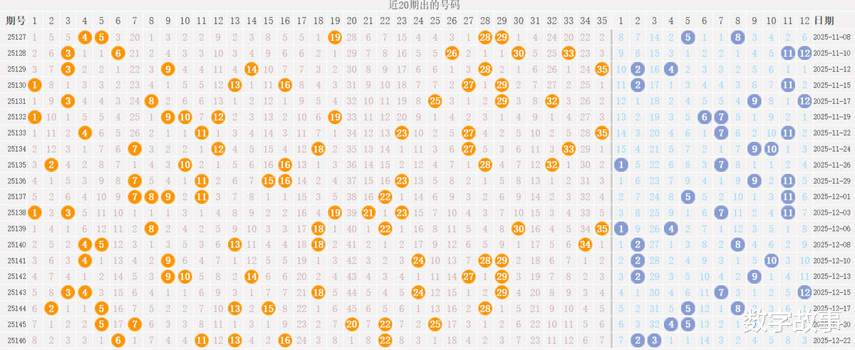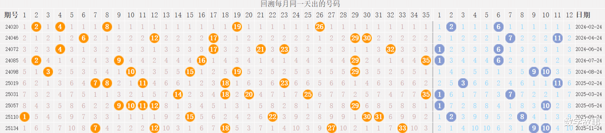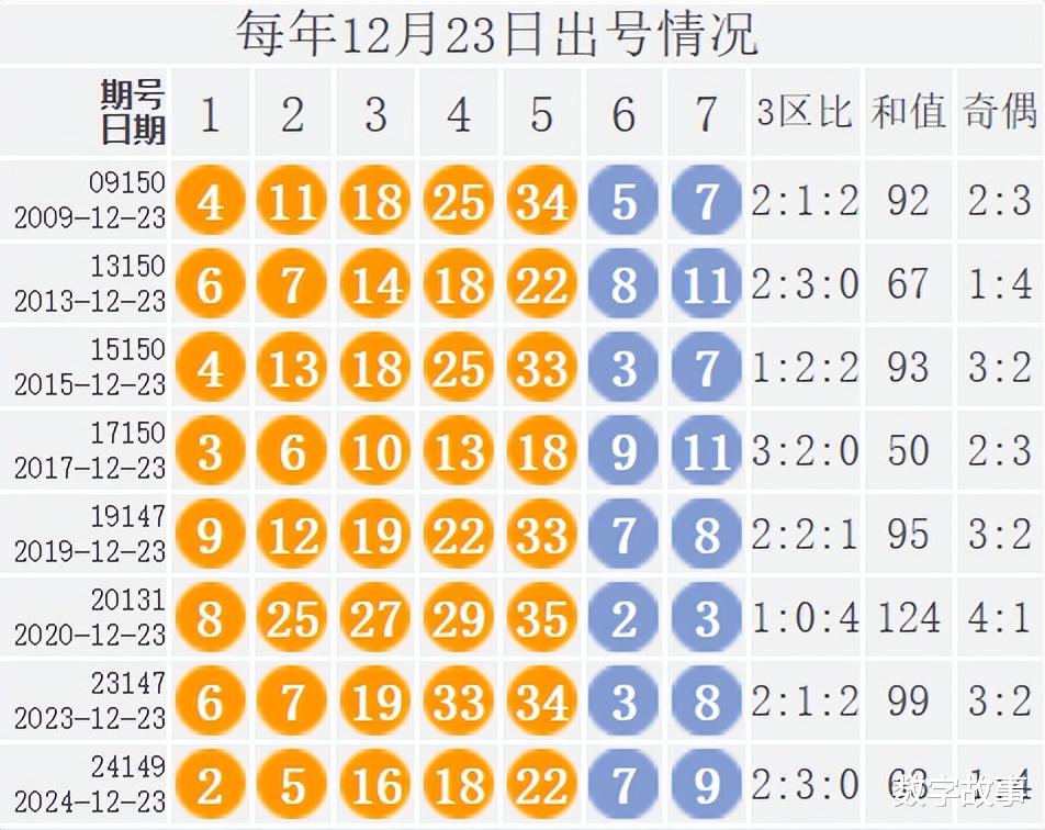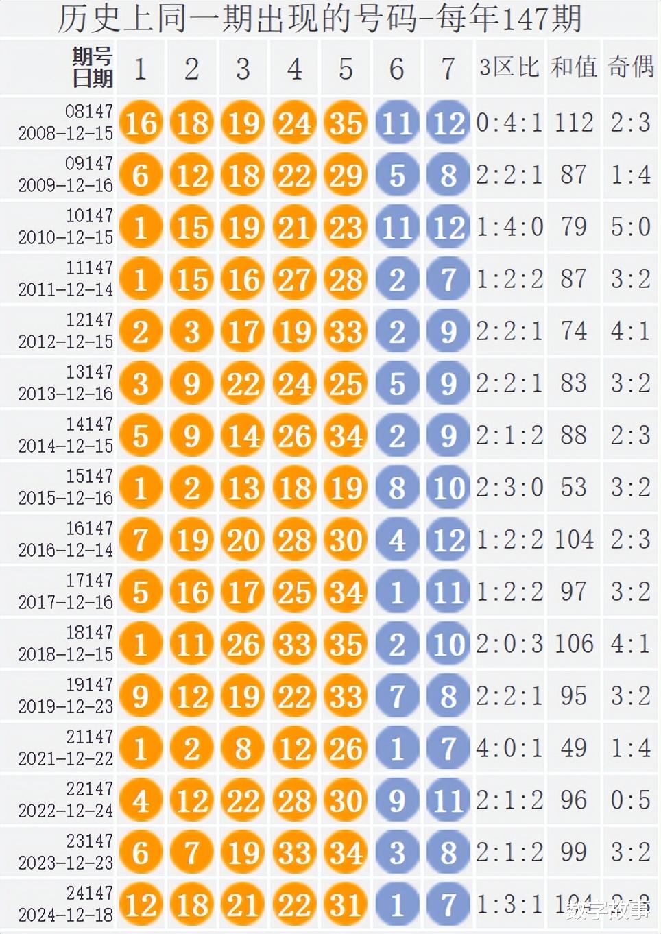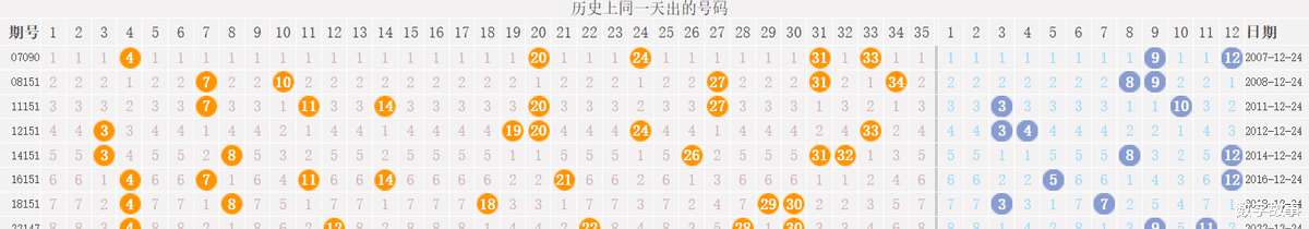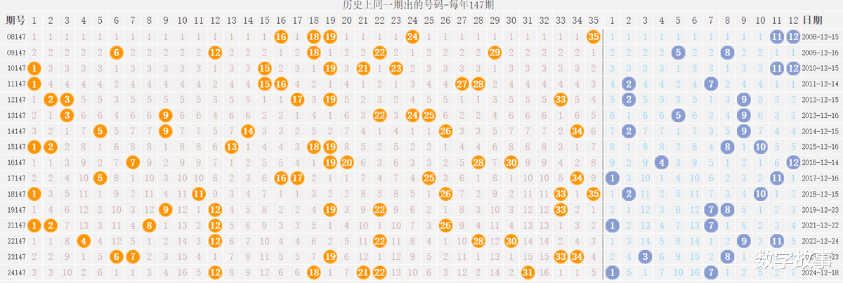 博弈心理,挑战概率: 看近期开奖号码,也可看历史数据统计!【大乐透25147期多角度冷热号】大乐透25147期四维走势图,前后区号统计及冷热号1) 历史同一天:12月24日 (共8期)