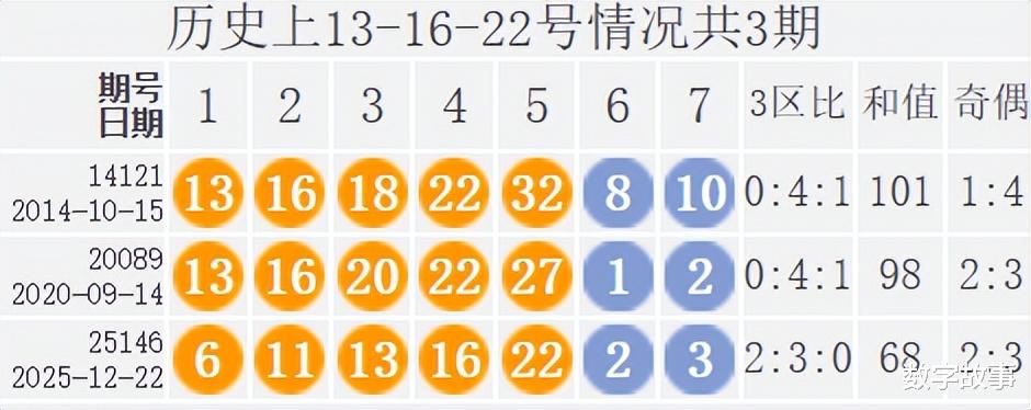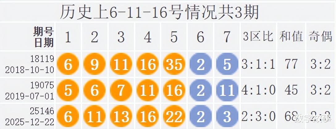 大乐透25146期前区号在过去是否出现过?大乐透25146期前区号: 6-11-13-16-22经查,历史上没有出现过与这一期5个前区号一样的,4个前区号一样的有1期,如下: