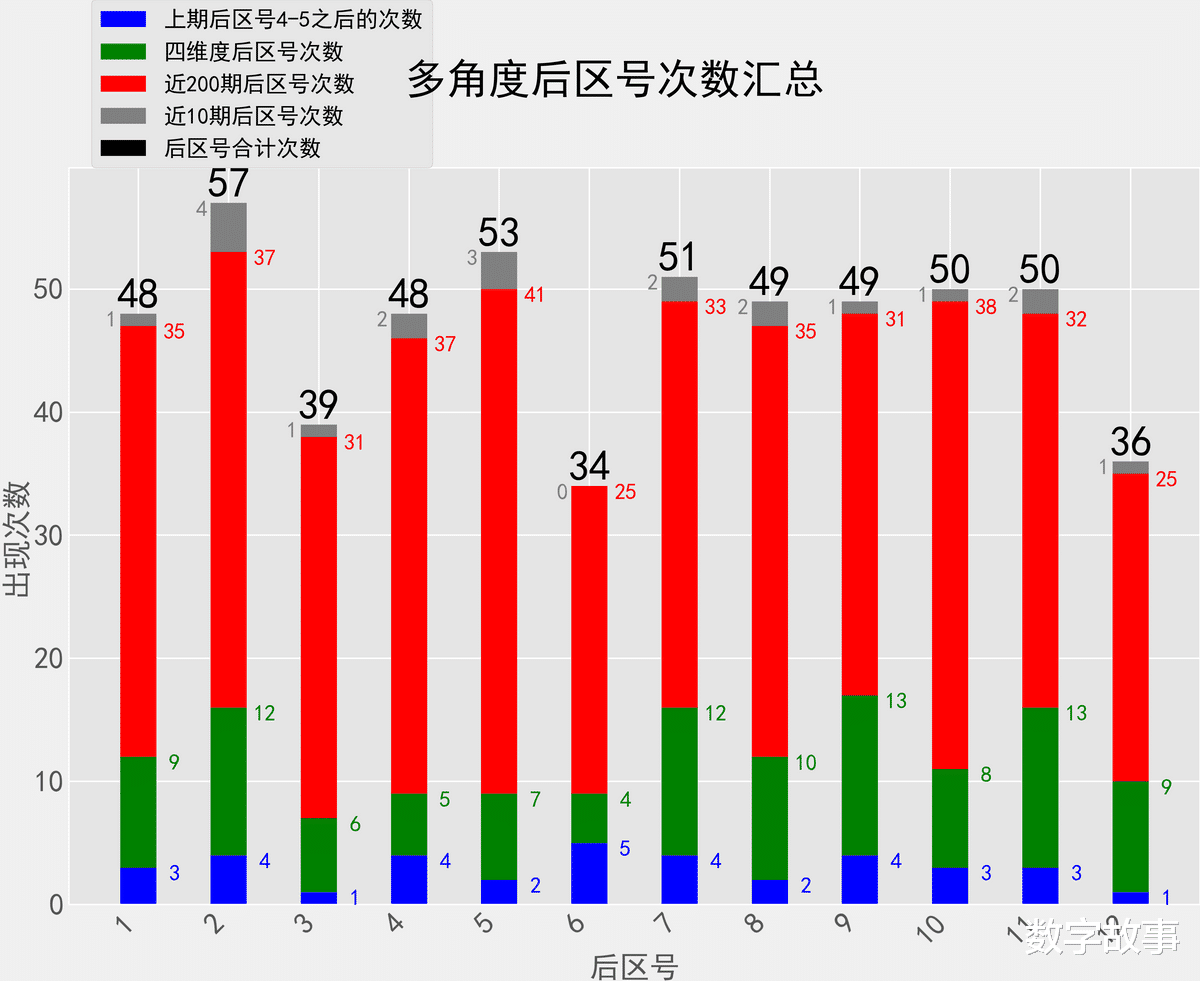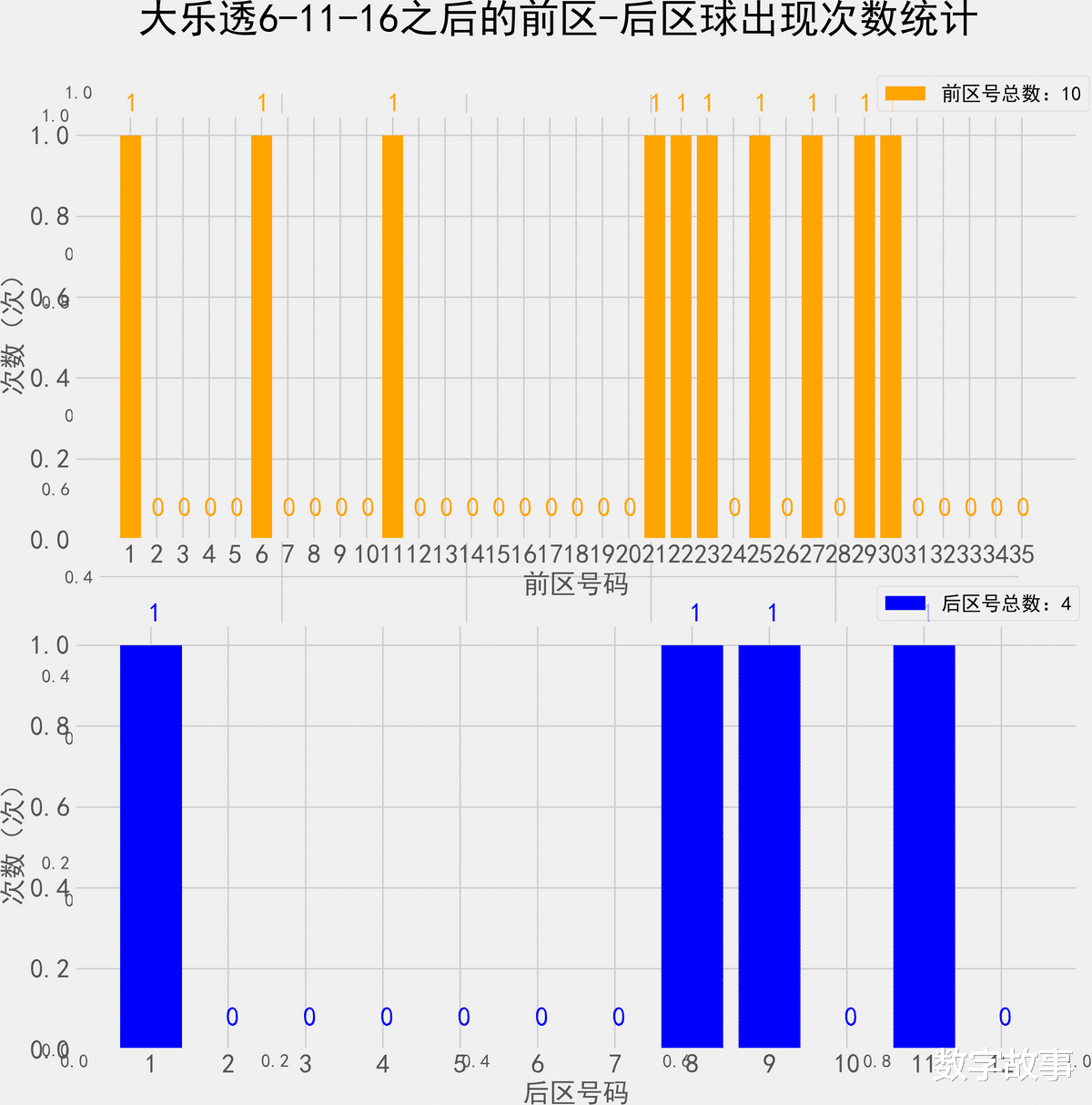 大乐透近10期前后区号统计情况统计样本数据: 50个前区号码 20个后区号码