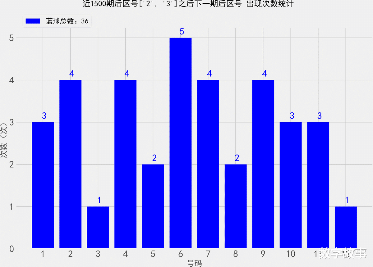 统计近1500期后区号2-3之后, 各后区号的出现次数大乐透25146期后区号是2-3找出近1500期后区2-3号之后,下一期出现的所有后区号,统计其出现次数。除开这一期,共出现了18次2-3后区号那么统计的样本数据是36个