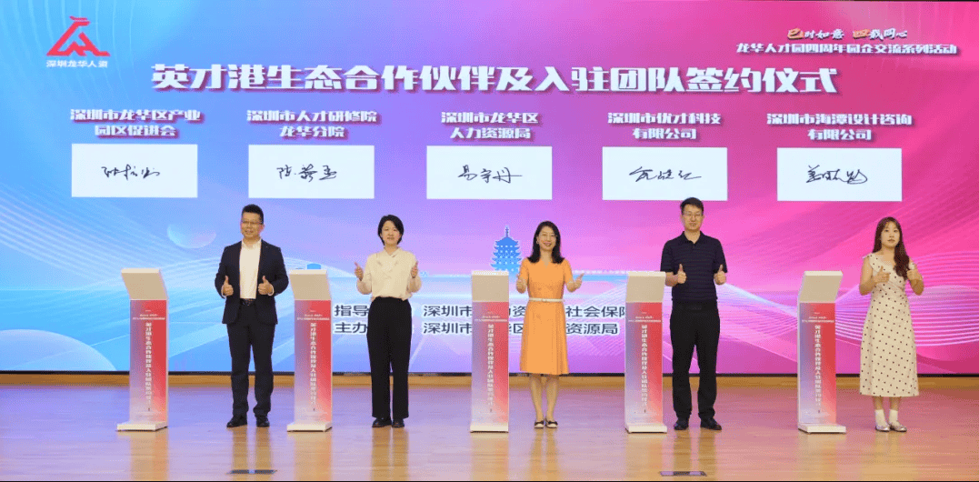 作为本次活动的亮点环节之一,深圳市优才科技有限公司与龙华区人力资源局,在“英才港生态合作伙伴及入驻团队签约仪式”上进行了签约。