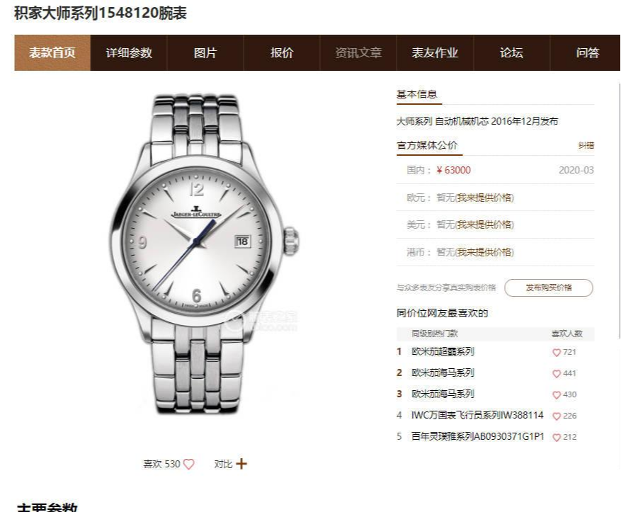下面,我们以积家大师系列1548120为例,给大家做详细介绍。