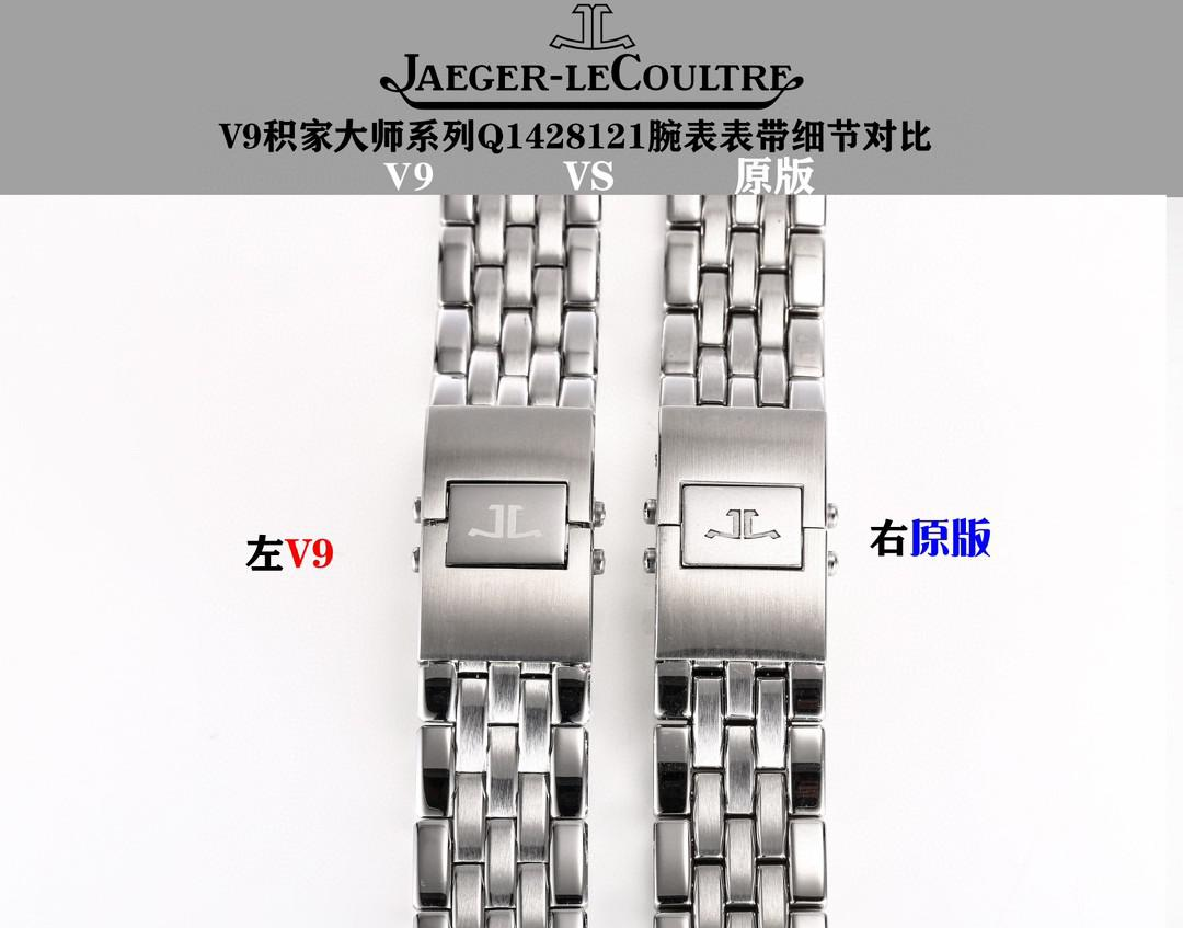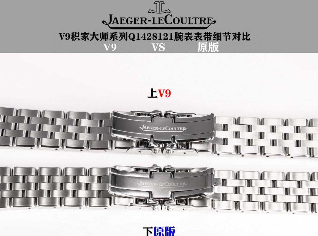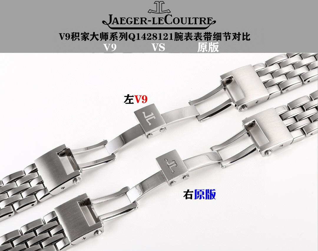 表带方面,工厂提供小牛皮表带和精钢表带选择。从上面精钢表带V9厂对比正品细节可以看出,钢带的做工及细节打磨,都达到和正品一致,喜欢钢带款积家大师的表友们,确实不要错过!