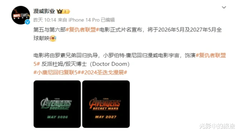 据《Variety》杂志报道,漫威工作室计划拍摄的两部超级英雄电影《复仇者联盟5》和《复仇者联盟6》将由安东尼和乔·罗素(即罗素兄弟)回归执导。此外,曾饰演钢铁侠的小罗伯特·唐尼有望重返大银幕,出演毁灭博士这一角色。然而,唐尼的回归似乎有一个前提条件,即电影必须由罗素兄弟执导,这表明他们之间的合作关系对唐尼而言至关重要。