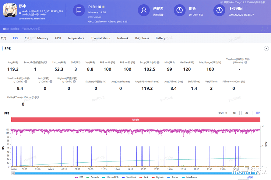 那除了165的高帧游戏体验,一加Ace 6T也是支持超帧的游戏体验,比如在《原神》开启游戏可设的最高画质+60帧模式之后,在手机游戏助手中开启超帧体验,可以直接获得120帧的《原神》体验,实测平均游戏帧率为119.2帧。