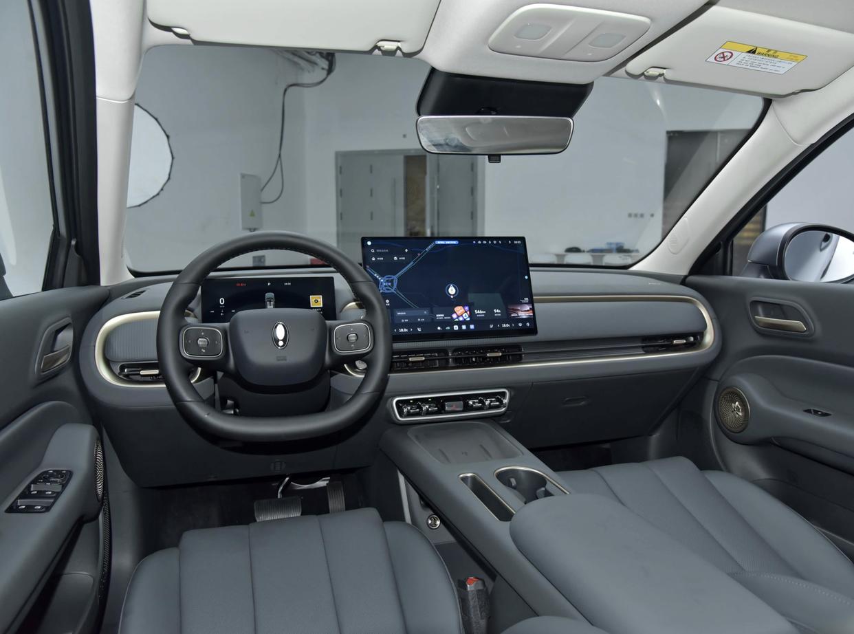 欧拉5整体采用了湛蓝色+米白色的撞色设计,并在多处加入镀铬元素进行点缀,增添几分复古气息。座舱采用大面积软性材质、米白色真皮材质和翻毛皮材质的交替运用,层次感鲜明,氛围感也很温馨。车内空间表现中规中矩,行李箱容积228-858L,最多能放下3个24英寸的拉杆箱和一些小书包之类的物品。中控台配备了双幅式多功能方向盘,两侧加入了触摸感应式按键,中间配备了欧拉车标,方向盘造型与新款坦克300有着异曲同工之妙。科技感方面,该车配备了悬浮式的无边框彩色仪表、悬浮式的中控液晶大屏,车机采用长城自己的CoffeeOS,通过屏幕能够看到很多常用的功能和App,满足日常使用肯定是不在话下。后排还配备了3.2L的冷暖储物箱。