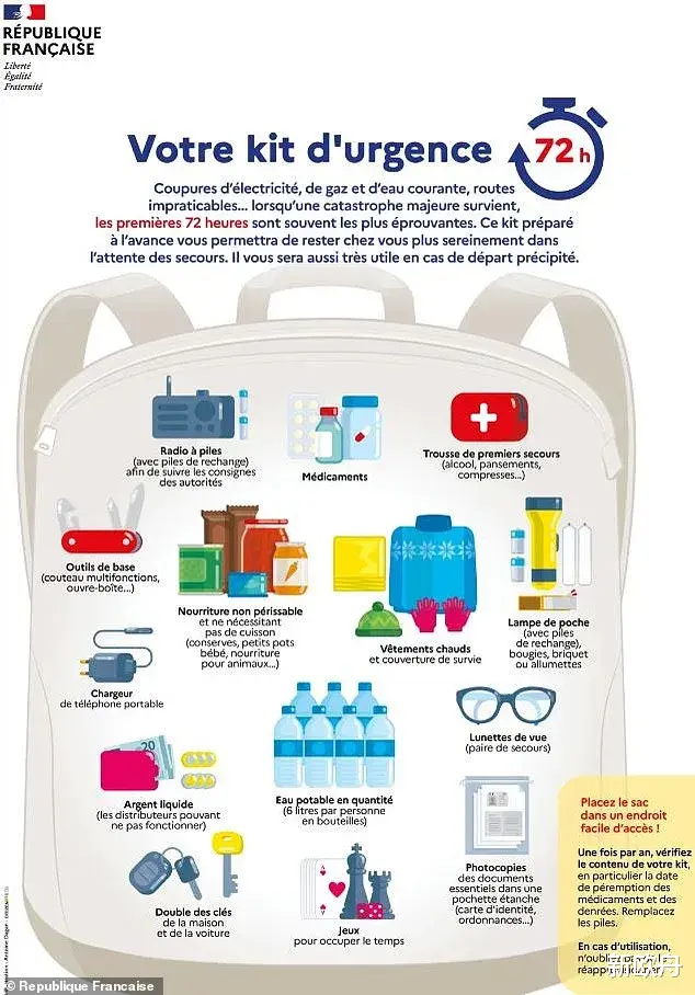 据悉,这份手册的出炉多少借鉴了一下瑞典的那本册子,不过,法国政府也强辩,与瑞典手册侧重于战争风险不同,法国的生存手册更注重多元危机的应对策略,例如疫情、工业事故、极端天气等。