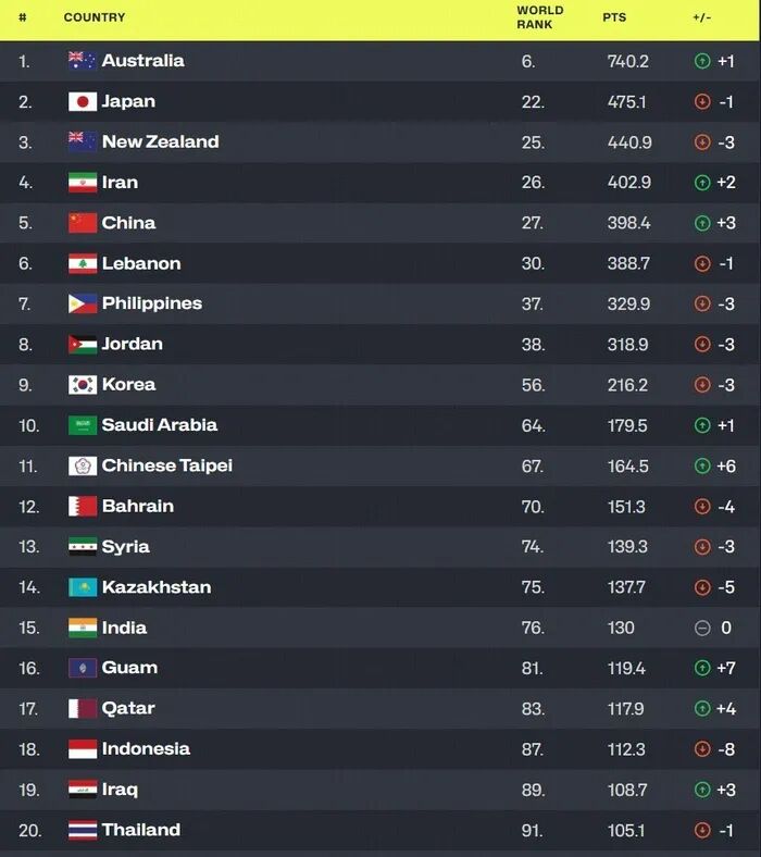 最后各大洲排名榜首的球队分别是美国男篮、澳大利亚男篮、德国男篮和南苏丹男篮。至于中国男篮的名次多少还是有些出乎意料,因为,在男篮亚洲杯之前,中国男篮世界排名第30 ,如今上升了3位,也算是肉眼可见的进步,可能很多人不解,中国男篮此前在男篮亚洲杯上获得第二名,为何排名落后日本男篮、新西兰男篮和伊朗男篮?