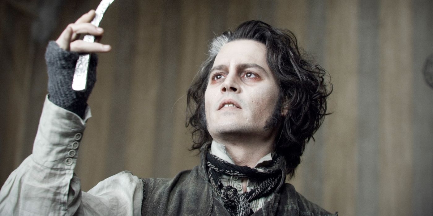 要说哪部音乐剧最对伯顿的路子,非《理发师陶德》莫属。改编自斯蒂芬・桑德海姆和休・惠勒的舞台剧,德普演主角陶德 —— 家人被邪恶法官夺走,他回到伦敦复仇,遇到了同病相怜的洛维特夫人(海伦娜・伯翰・卡特 饰)。