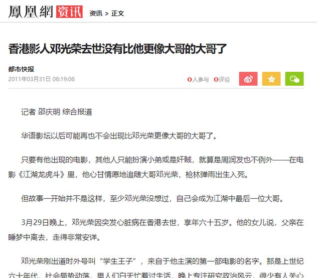 都市快报——香港影人邓光荣去世没有比他更像大哥的大哥了