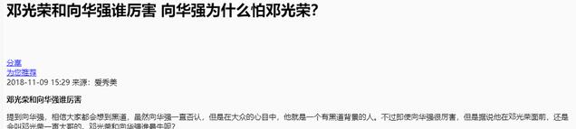 海峡网——邓光荣和向华强谁厉害 向华强为什么怕邓光荣?