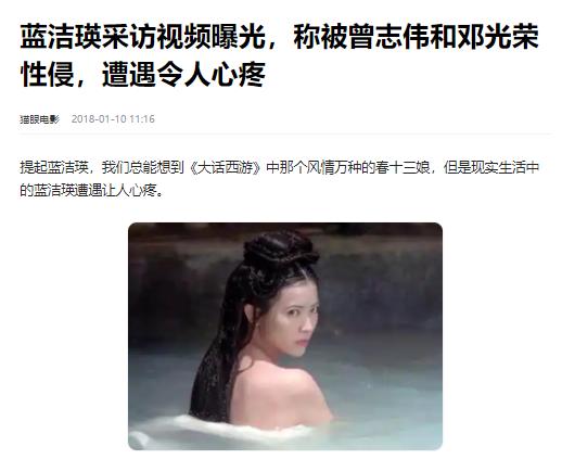 猫眼电影——蓝洁瑛采访视频曝光,称被曾志伟和邓光荣性侵,遭遇令人心疼
