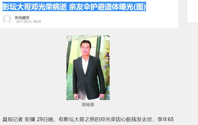 新闻晨报——影坛大哥邓光荣病逝 亲友伞护避遗体曝光(图)