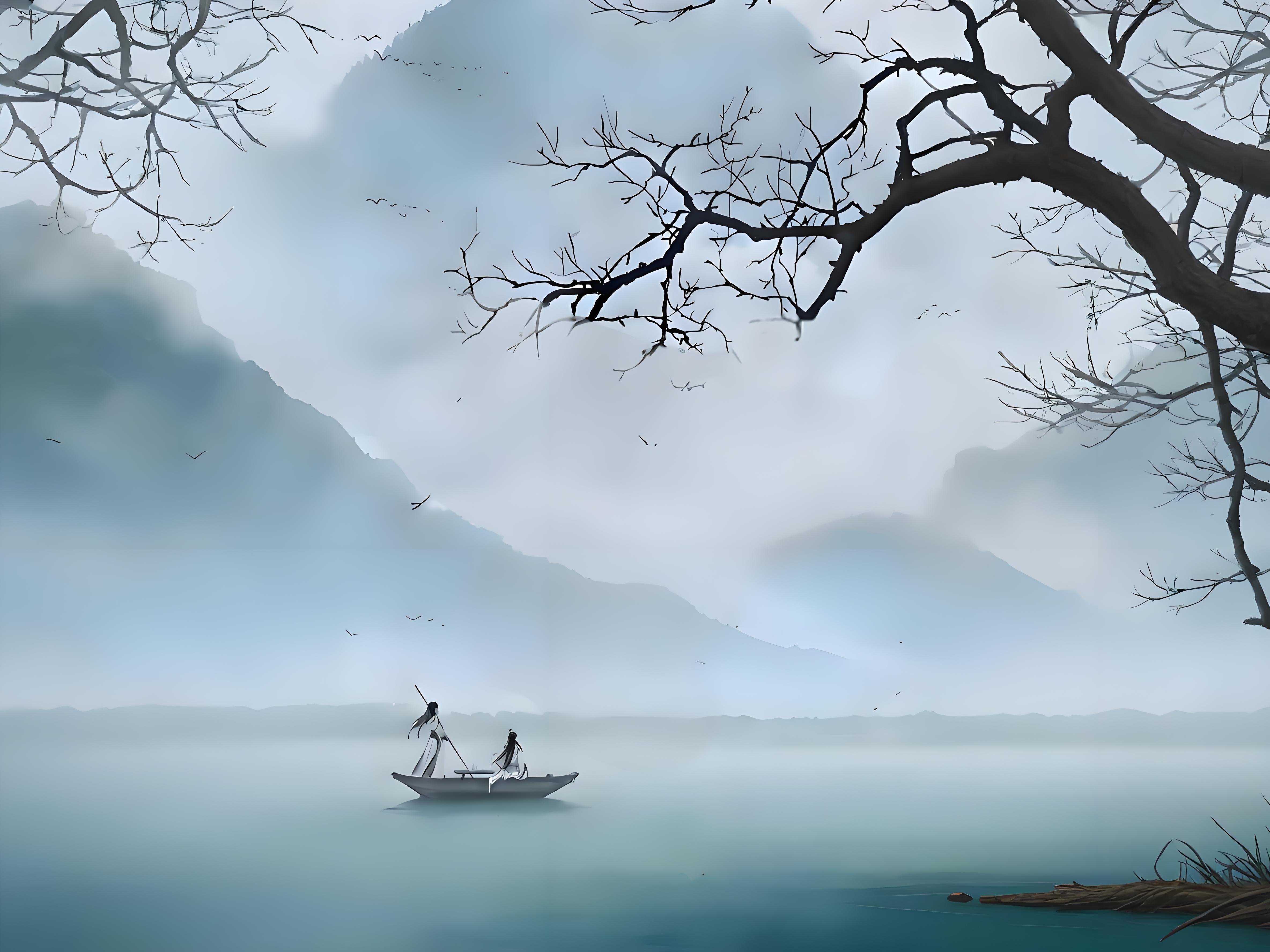 相形之下,柳宗元则沉郁很多,亦如笔下的诗:千山鸟飞绝,万径人踪灭。孤舟蓑笠翁,独钓寒江雪。