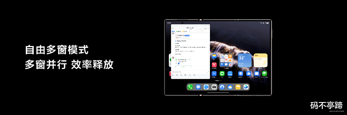 更绝的是,Mate XTs还支持自由多窗模式,甚至能将飞书的会议界面、对话详情页等拆分为独立窗口,一边开着线上会议,一边还能同步回复消息、处理文档。这种多线程并行的操作,以前不是只有笔记本电脑才能实现吗?