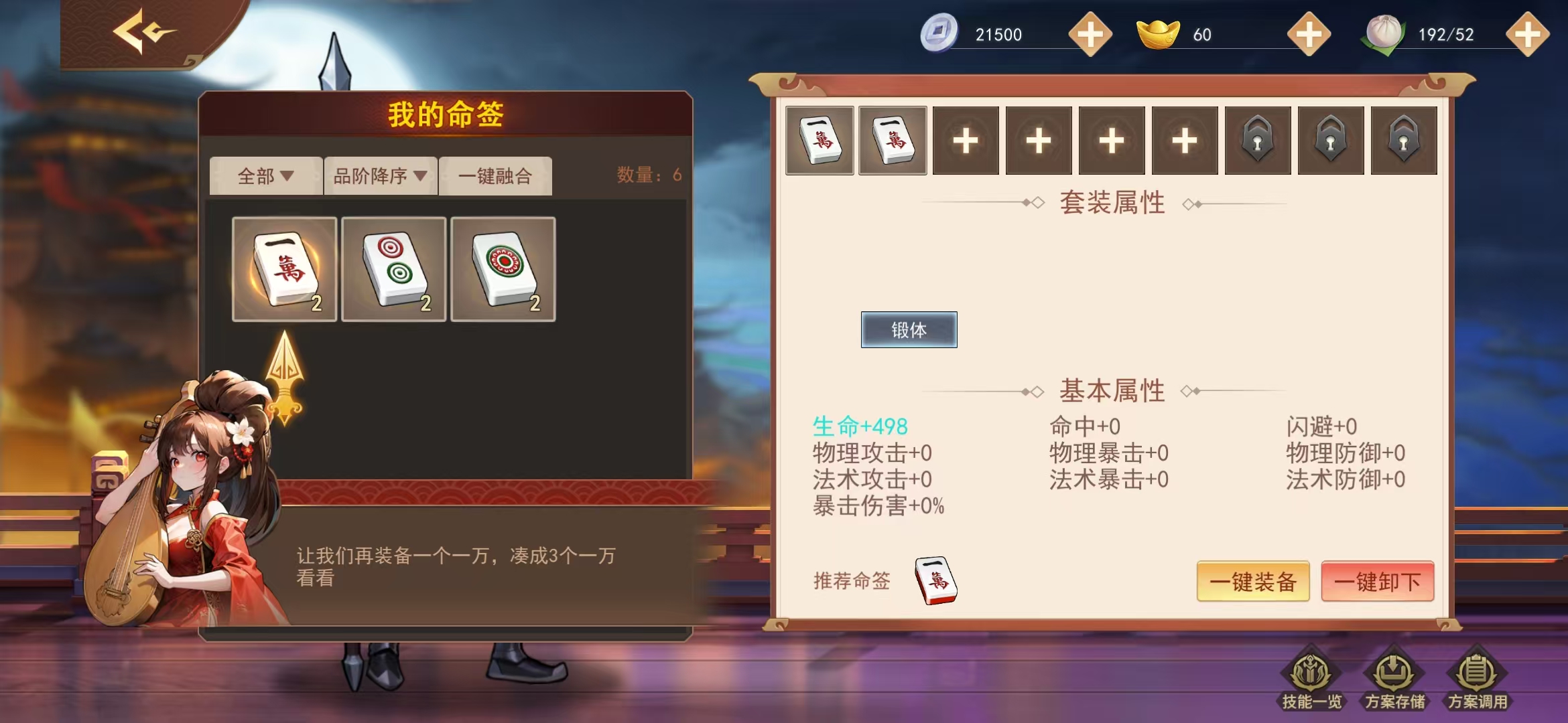 在《掌中三国》(tap、快爆版)中,武将自由搭配的东西有很多,比如:命签(麻将牌)可以组合9张麻将牌,不同组合会触发不同的属性和技能;坐骑全部可选择,技能从1个到6个,极品6技能需要通过猎苑养马繁衍获得;神兵是唯一绑定角色的道具,但是每一把神兵的属性是随机的,需要通过神兵台或者任务箱子开出来,找到最适合的那一把;阵门也没有限制,每个阵门都拥有一个专属技能,需要和武将自身技能做搭配,有时凶门也可以变成吉门。
