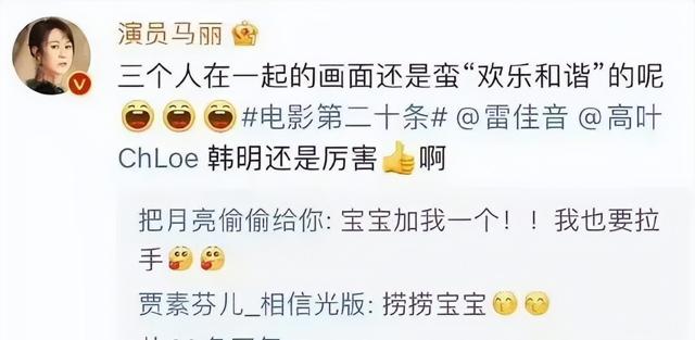 当时主角团的合照中没有她的身影,而马丽却强调剧组“欢乐和谐”。